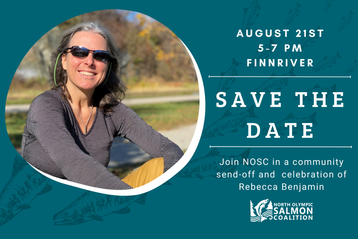 SAVE THE DATE! You’re Invited to a Community Potluck in Celebration of Rebecca Benjamin When: Wednesday, August 21st, from 5-7 PM, followed by a dance party with DJ Lunchlady Where: Finnriver Cidery, 124 Center Road, Chimacum Join us as we celebrate Rebecca Benjamin, the outgoing Executive Director of the North Olympic Salmon Coalition (NOSC). After 18 years of visionary leadership … Read More