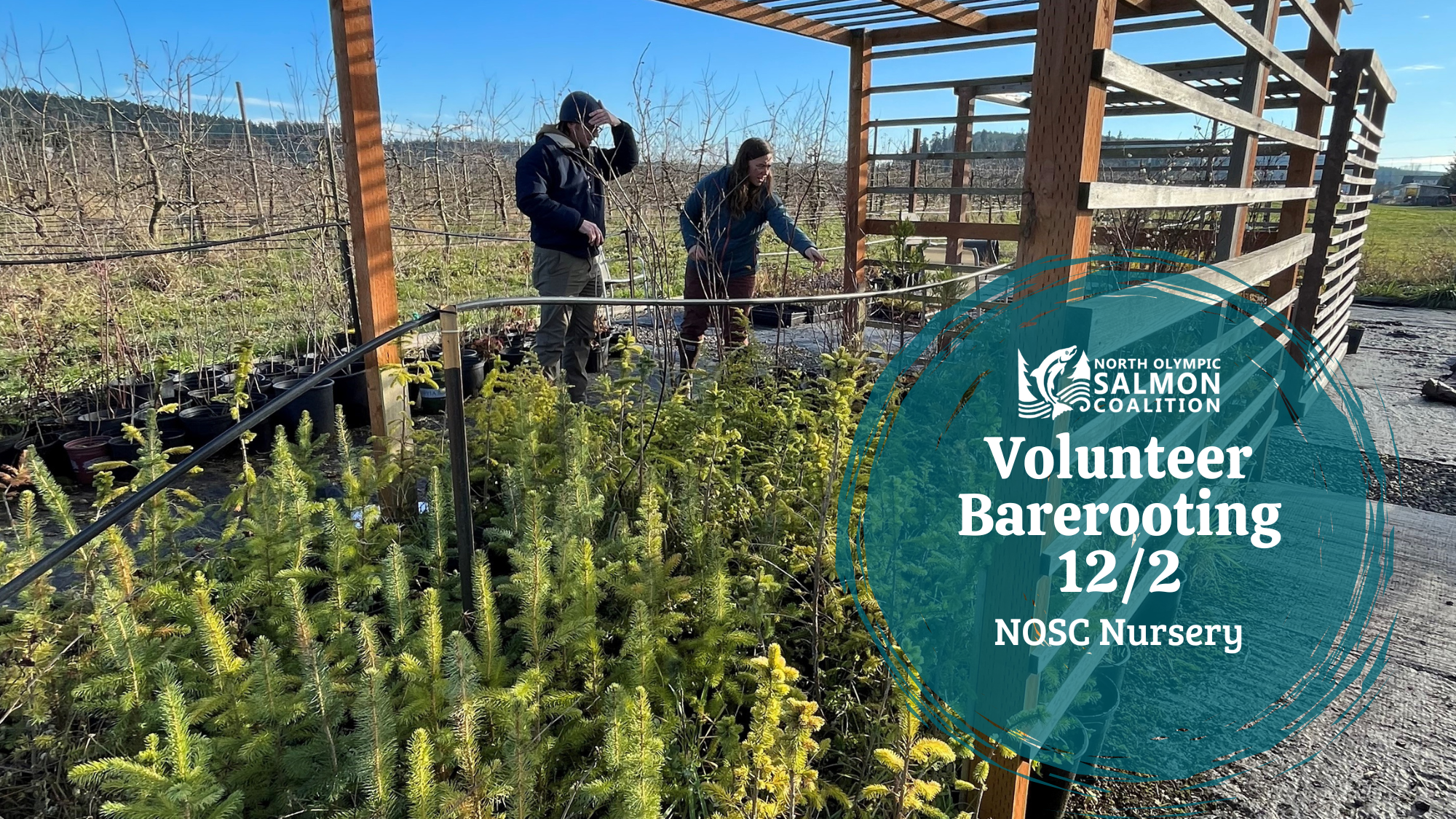 Volunteer to help NOSC bareroot plants to prepare them for planting at Serenity Lane the next day. We will be working at the NOSC Nursery at Finnriver Farm & Cidery to remove native trees and shrubs from their storage pots. Now dormant for the winter, these plants can be transported for planting by removing the potting soil from their roots. ... Read More